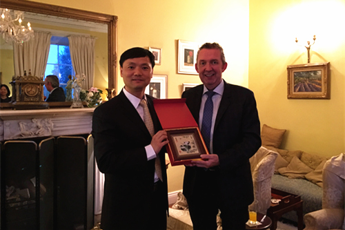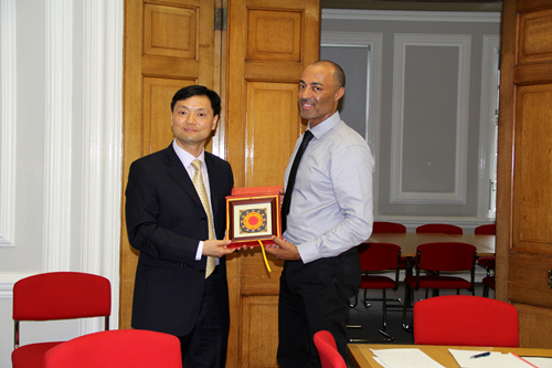 张院长与伦敦大学金匠学院国合部部长 Geraint Fox 互赠礼物