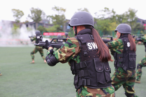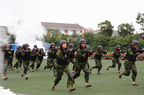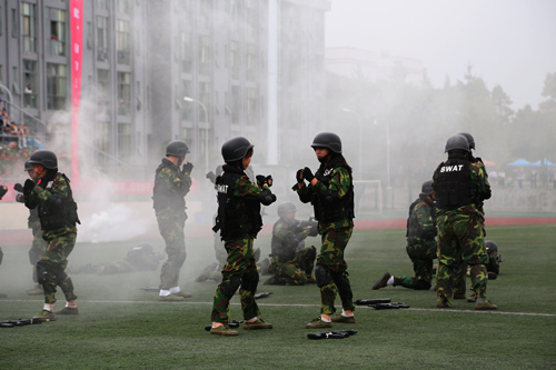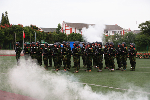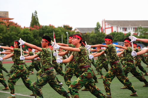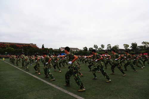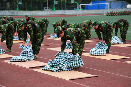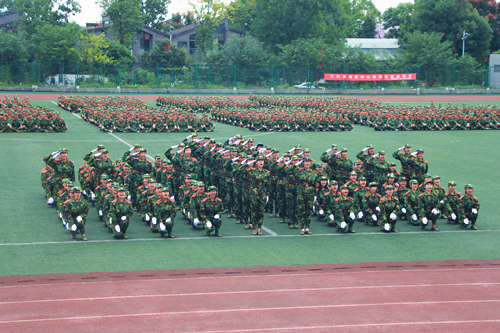 学院党委书记、院长张应辉教授在承训部队首长和2016级新生军训团团长的陪同下检阅了新生方阵。随后,汇报表演开始。本次军训汇报演出形式多样,参演的有花式表演方队、军体拳方队、军棍表演方队、匕首操方队、内务整理方队、战术表演方队,展示了同学们汗水换来的丰富成果。同学们口号嘹亮、步伐整齐,逐一通过主席台接受检阅。他们精神抖擞,饱含激情,向学院领导和师生们展示了十天以来的军训成果。