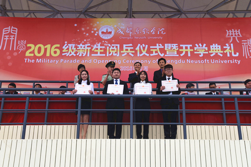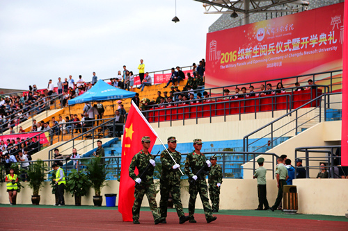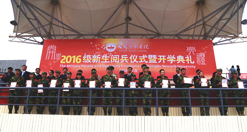 学院隆重举行2016级新生军训阅兵仪式暨开学典礼