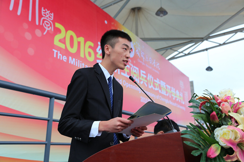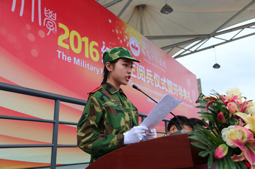 首先由承训部队首长为典礼致辞。他祝贺2016级新生顺利完成了军训,并对学院参训新生在军训中不惧艰苦、不畏困难的良好精神风貌表示肯定,鼓励同学们在以后的学习生活中再接再厉、不断进步。