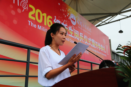 学院学工部部长蒋利明宣读2016年军训团先进集体和优秀学员名单。经民主评议,各连排推荐,各营、军训团审核,评出10个“优秀集体”以及19名军训“优秀学员”。