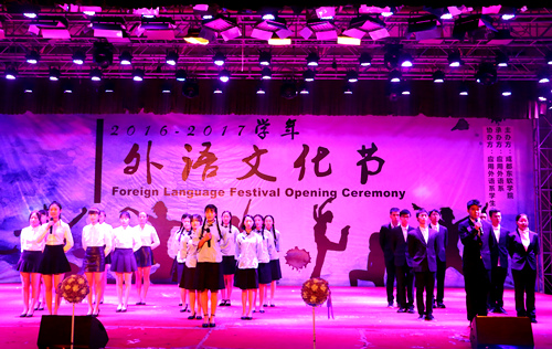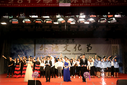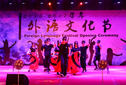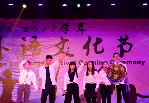 11月2日晚上,学院2016-2017学年外语文化节开幕式在学院大学生活动中心隆重举行。学院党委副书记、副院长张宪民,副院长康桂花,各系部老师和学生出席了开幕式。本次开幕式拉开了2016-2017学年外语文化节的序幕,吸引全院各系师生参与其中,旨在推进更多的同学了解外语外文、感受外国文化。