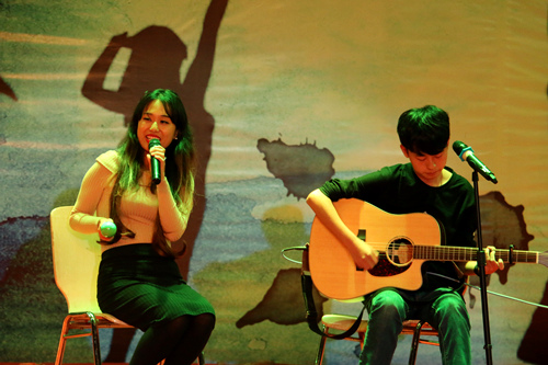 同学们的热歌热舞点燃现场气氛,中日英三语版《再别康桥》诗朗诵让同学们感受到各国文化的交流和融合,同学们的日语、英语随性演讲散发外语的独特魅力,更有老师们的外语歌《anyone else but you》《she》演唱、同学们的串烧歌曲《如果你是我的小幸运》引起台下同学举起手机闪光灯挥舞,感受各国语言的魅力。