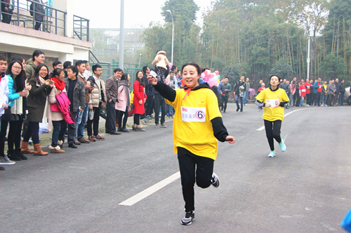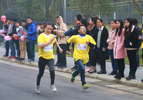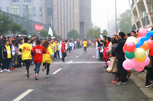 开跑信号发出后,第一棒选手们奋力冲出操场,黄色红色的队服十分耀眼,浩浩荡荡的队伍成为冬日校园里的一道风景线。接下来的几棒彼此间逐渐拉开了差距,老师同学们热情仍旧不减,加油声此起彼伏,回荡在整个校园;选手们自信飞扬,青春的气息和蓬勃的力量带领他们一路冲向终点。