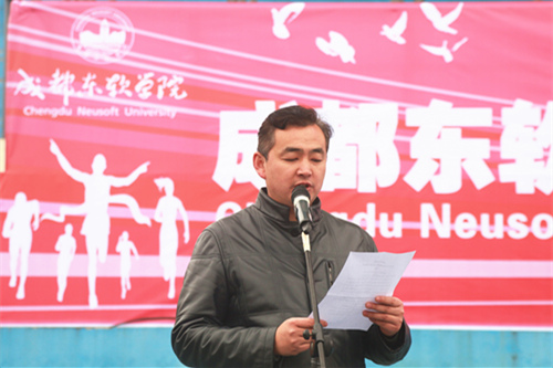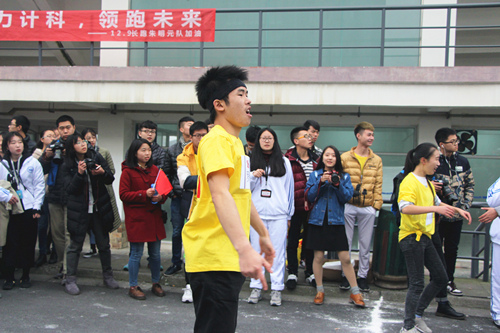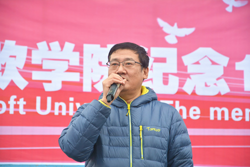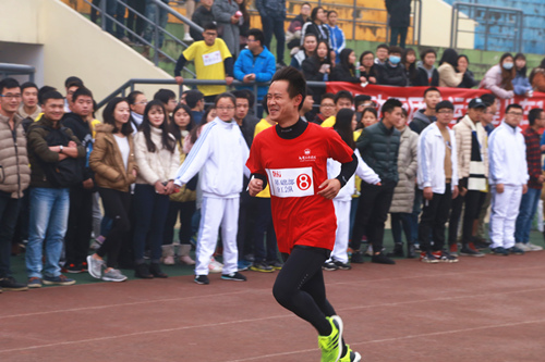 学院党委副书记、副院长张宪民为大赛致辞,他指出,12.9运动是一场值得纪念的学生爱国运动,此次活动的主题就是爱国,同时为增强师生间的凝聚力与团结协作能力比赛以接力团队形式举行,并希望学生坚持锻炼、强身健体,为美好精彩人生打下坚实基础。