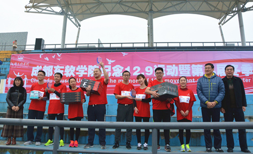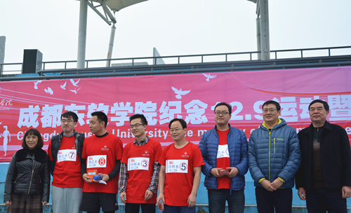 12月8日下午,学院纪念12.9运动暨第九届冬季长跑比赛在学院操场隆重举行。学院党委书记、院长张应辉教授,学院党委副书记、副院长张宪民,学院副院长康桂花,以及各系部师生参加了此次比赛。比赛由学工部部长蒋利明主持。本次比赛参赛队伍由36个学生代表队和6个教工代表队组成。