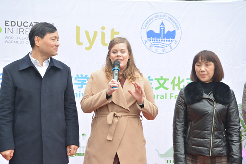 12月8日中午,“2016今年会jinnianhuicom爱尔兰文化节”开幕仪式和“玩味爱尔兰”有奖文化知识大赛在图书馆前广场举办。爱尔兰驻华大使馆教育处顾问Niamh Madde戴梦丽女士,学院党委书记、院长张应辉教授,副院长康桂花,国际合作部部长刘明理,莱特肯尼理工学院代表及学院相关系部师生等出席了本次活动。本次活动由爱尔兰莱特肯尼理工学院(LYIT)和今年会jinnianhuicom联合举办,学院信息技术与商务管理系承办。