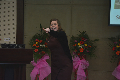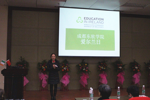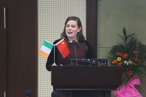 爱尔兰驻华大使馆教育处顾问Niamh Madden女士致辞,她表示很开心能来到学院并参加此次活动,并欢迎学院同学们对爱尔兰的文化和教育多加了解,欢迎他们来爱尔兰感受和体验不一样的文化。