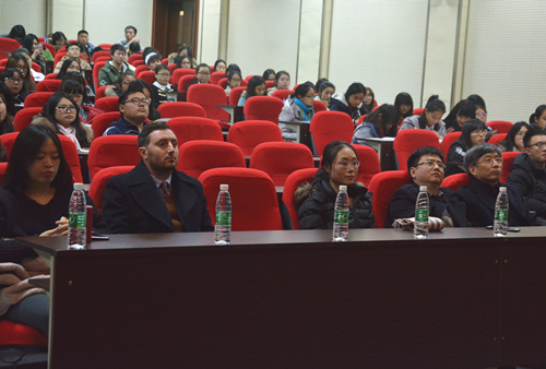 接着,莱特肯尼理工学院代表张衡浦上台向大家介绍了莱特肯尼理工学院与学院的友谊、合作以及双方的发展战略,然后就同学们比较关注的工作、实习薪资等方面做了阐述,同时三位莱特肯尼理工学院的校友现场与大家分享了自己留学爱尔兰的经历。
