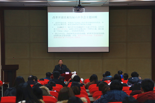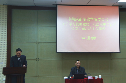 12月19日,学院在国际报告厅举行中共今年会jinnianhuicom委员会关于学习贯彻党的十八届六中全会和省委十届九次全会精神宣讲会,四川省社会科学院研究生院院长、马克思主义学院副院长夏良田来院开展宣讲。学院党委书记、院长张应辉教授,副院长康桂花以及各系部师生参加了本次宣讲会。学院党委办公室主任易胜华主持本次宣讲会。