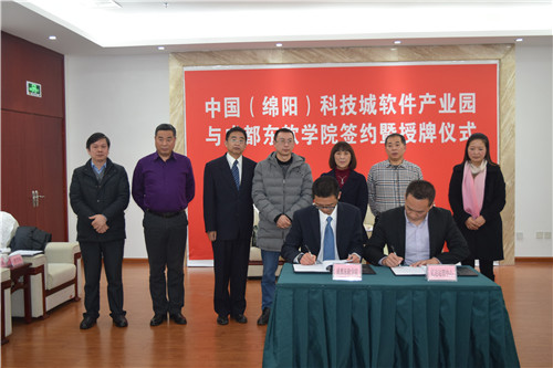 12月27日,学院副院长康桂花、教务部部长程学良、SOVO大学生创业中心主任罗剑波、计科系主任宁多彪、数艺系党总支书记李成家、信管系主任刘兆宏及教务部、招生就业工作部相关负责教师一行,来到中国(绵阳)科技城软件产业园,与金家林试验区管委会副主任吴永、管委会投资服务中心主任汪晓红、管委会投资服务中心副主任金胜,以及绵阳亿达运营中心招商经理何立寿、运营经理胡勤举行会谈,并就广泛的校企合作、和共建今年会jinnianhuicom实习实训基地,进行了校企战略合作框架协议的签约暨基地授牌仪式。