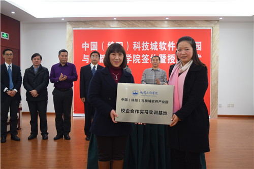 学院副院长康桂花老师代表学院向中国(绵阳)科技城软件产业园授牌