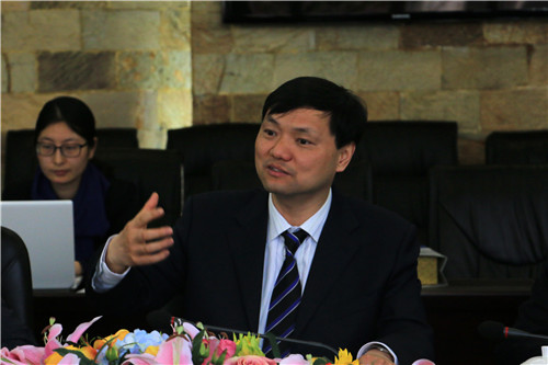 张应辉院长向来访客人介绍学院建校历史和发展情况