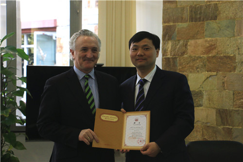 张应辉院长为莱特肯尼理工学院副院长John Andrew Bonar颁发聘书