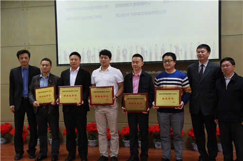 四川省国家公务员培训中心副主任周小明,协会会长李璞,副会长赵晓鸿、刘宏、付恩才上台共同揭牌。会长、副会长为各理事单位和监事单位代表授牌。