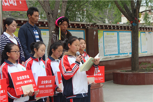 丹巴县高中受捐助学生代表发言,表示将努力学习