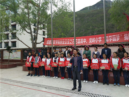 上月底,学院8家学子创业企业发起的“助学圆梦”活动队来到丹巴县高中及党岭小学,为在校师生带去了学习生活所需的物资,帮助学子求学圆梦。
