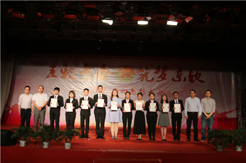 大会对学院优秀团干部进行表奖,由教务部部长程学良、学工部部长蒋利明、外语系副主任张建华、保卫部副部长姚友罡为获奖代表颁奖。