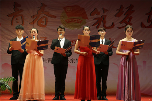 大会对学院优秀团员进行表奖,计科系党总支书记贾骐、信管系党总支书记沈洪科、数艺系党总支副书记赵璧、外语系党总支副书记欧阳稚文为获奖代表颁奖。