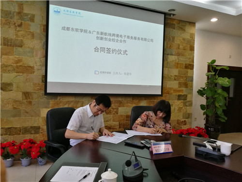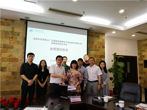 5月12日,广东新航线跨境电子商务服务有限公司(以下简称“广东新航线”)副总李洪、广东新航线四川区域运营总经理李静兰、运营总监周欣卓来访学院,与学院副院长康桂花、教务部部长程学良、应用外语系主任邓海、副主任张建华一同商讨校企合作方案,并签订了合作协议。