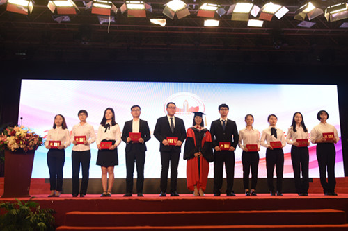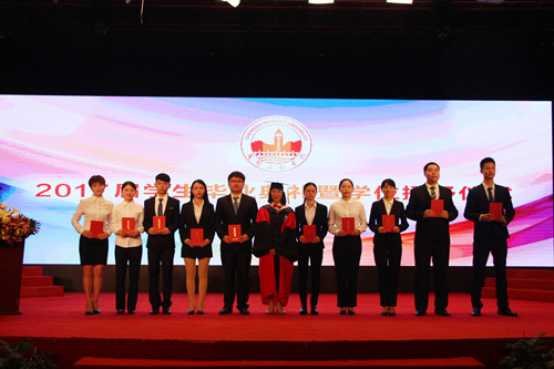 学院副院长刘宏宣读了2017届省级、校级优秀毕业生表彰文件。本届共有2682名毕业生,其中有27名同学被评选为四川省优秀毕业生,254名同学被评为学院优秀毕业生,学院副院长康桂花为优秀毕业生代表颁发了优秀毕业生证书,学院副院长刘宏为2017届毕业生代表颁发毕业证书。
