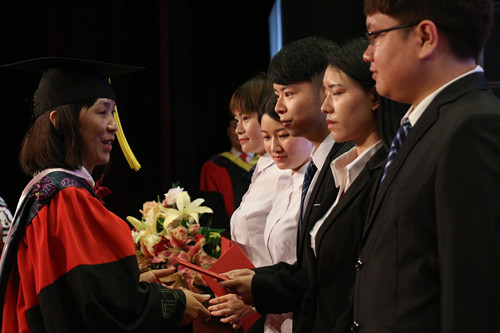 学院副院长康桂花为2017届校级优秀毕业生颁发毕业证书