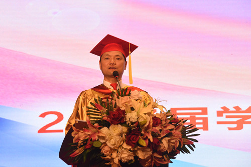 学院计算机科学与技术系教师吴平贵作为教师代表发言。他给同学们送上两点建议。首先,他希望同学们坚守自己的梦想并为之努力奋斗;其次,他希望同学们继续发扬学院“精勤博学,学以致用”的校训,在平淡生活中创造出属于自己的精彩;最后,他祝福同学们梦想成真,前程似锦。