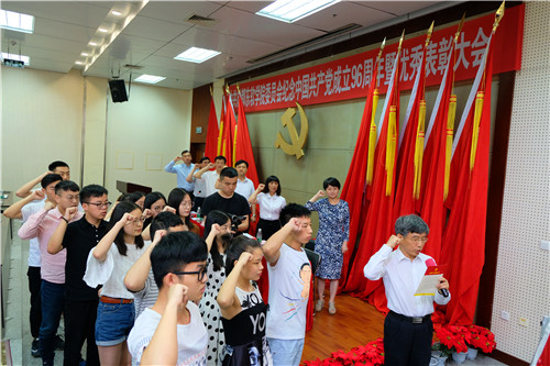 随后,在学院党委委员、党委组织部部长刘明理同志的带领下,全体党员起立,面向党旗,新党员宣读入党誓词,老党员重温了誓词。