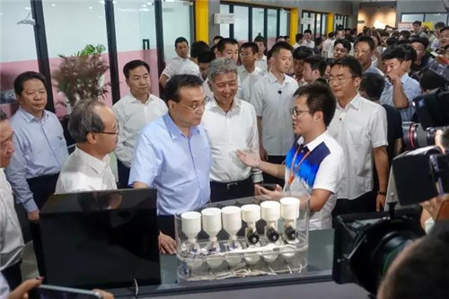 2015年9月9日,李克强总理在视察大连创业E港时,与大连东软创业校友团队亲切交流。