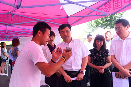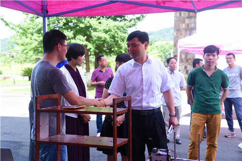 闭幕式开始前,学院领导参观了本届比赛各团队的参赛作品。学院党委书记、院长张应辉教授与各团队同学就各自作品进行了亲切交流,并提出了宝贵意见,他希望同学们在之后的国赛中取得好成绩。