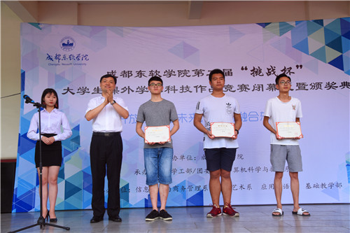闭幕式上,本届“挑战杯”大赛总教练、学院计科系教师陈文飞博士就本次比赛做出点评和建议。陈文飞老师首先对同学们取得的优异成绩表示祝贺,对学院领导及各系部对本次大赛的支持表示衷心感谢。他指出,本次比赛踊跃出了很多优秀的作品,希望同学们再接再厉,继续完善自己的作品,在今后的比赛中再创佳绩。