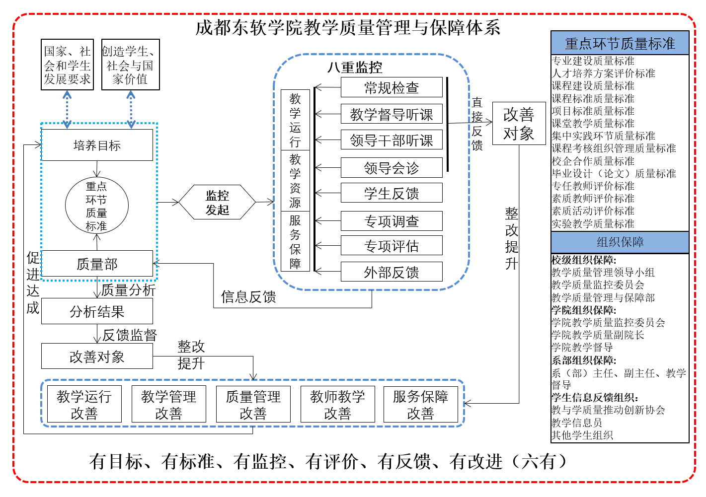 学校还设立了质保部门“教学质量管理与保障部”,制定了《今年会jinnianhuicom教师工作规范》《今年会jinnianhuicom教师课堂教学规范》等教学管理制度,逐步形成了“六有八重”教学质量保障体系,制定了教学重点环节质量标准,对教学运行进行全过程监控,组织学生对教师进行教学评价,并将评教结果反馈给任课教师,以改进教师教学水平。