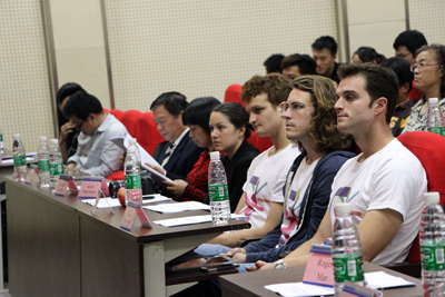 4月19日下午,学院首届美国AppJamm移动应用大赛开幕式在A3-104学术报告厅隆重举行。参加大赛开幕式的嘉宾有艾普科美全球营销总监Aaron Papermaster、艾普科美企业发展部部长Elizabeth Campbell、艾普科美人力资源部部长Sophia Zheng、东软嵌入式事业部首席技术官杨志超、AppJamm移动应用大赛发起人之一Eric Weiland、大桥学院Jacob Papermaster等中外专家。学院副院长曹云凤教授、院长助理兼教务部部长康桂花、计科系主任杨瑞良教授以及学院相关领导出席了此次开幕式。开幕式由计科系副主任巫家敏主持。